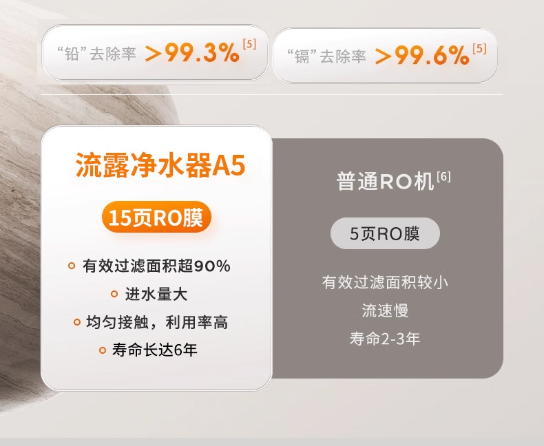 流露A7反渗透净水器RO膜800G实测超1000G母婴直饮1380元