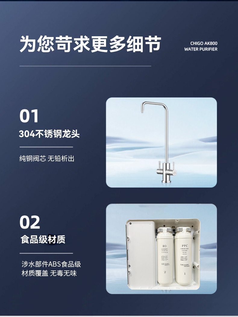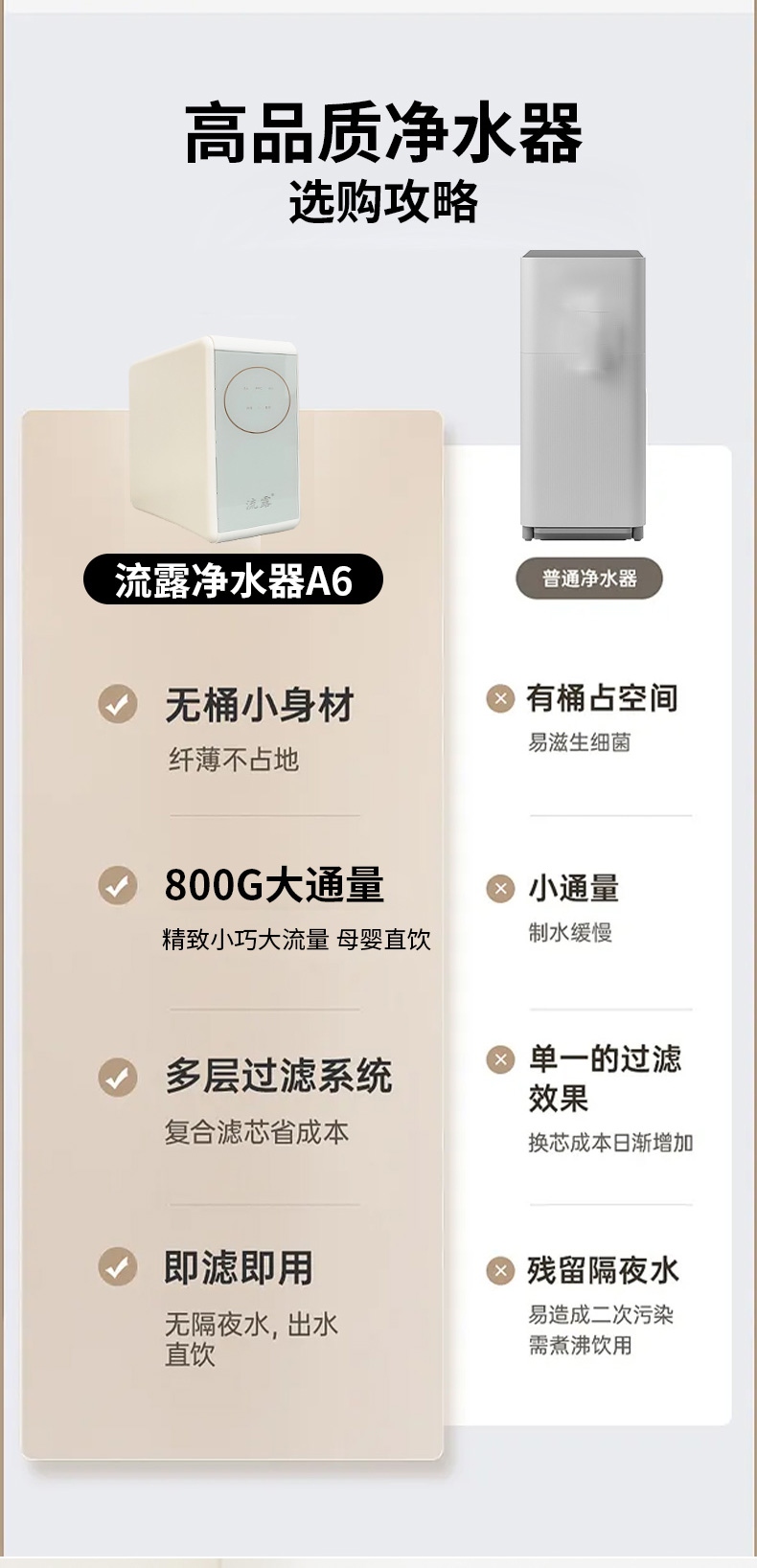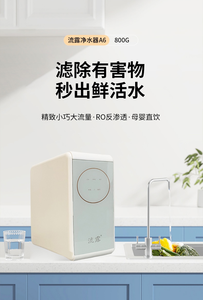 流露A6反渗透净水器RO大流量800G无压力桶999元